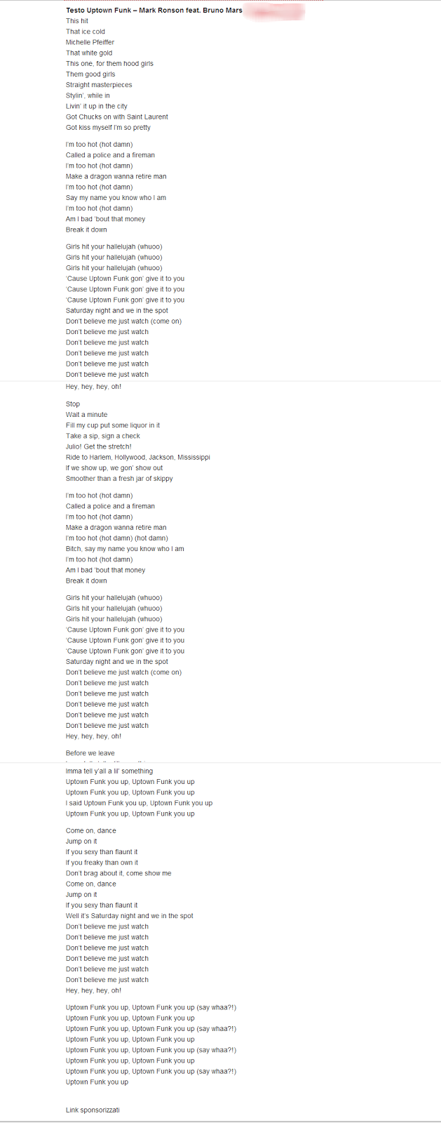 Testing Song Lyrics For Uptown Funk By The Brighter Rewriter Tpt