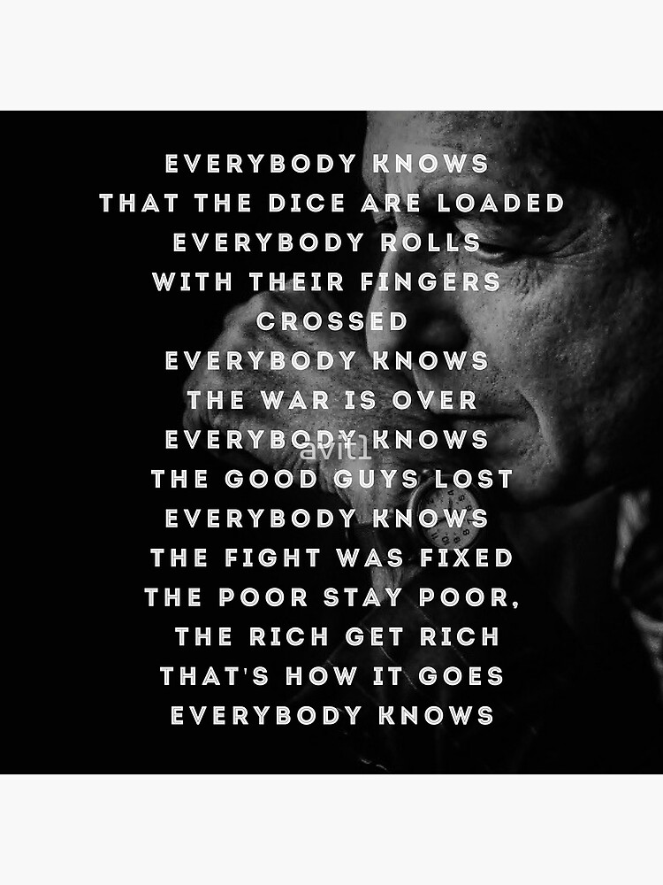 Leonard Cohen Everybody Knows Lyric Print Black And White Everybody Knows