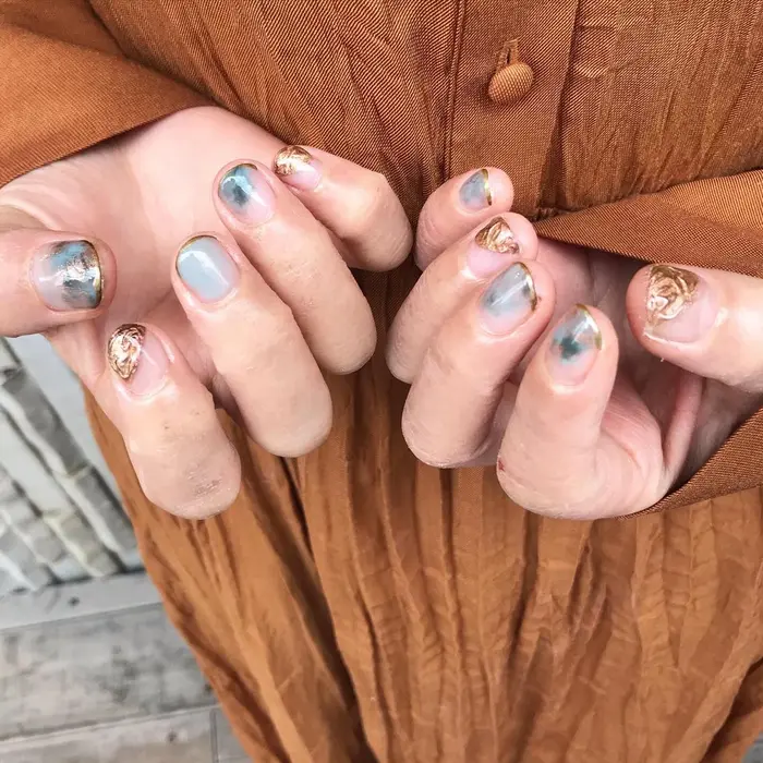 テーマは"モネの池風" 絵画のような色のまざりと、額縁っぽいブロンズがポイント。♡|Logue所属・Logue AKIのネイルデザイン|ミニモ