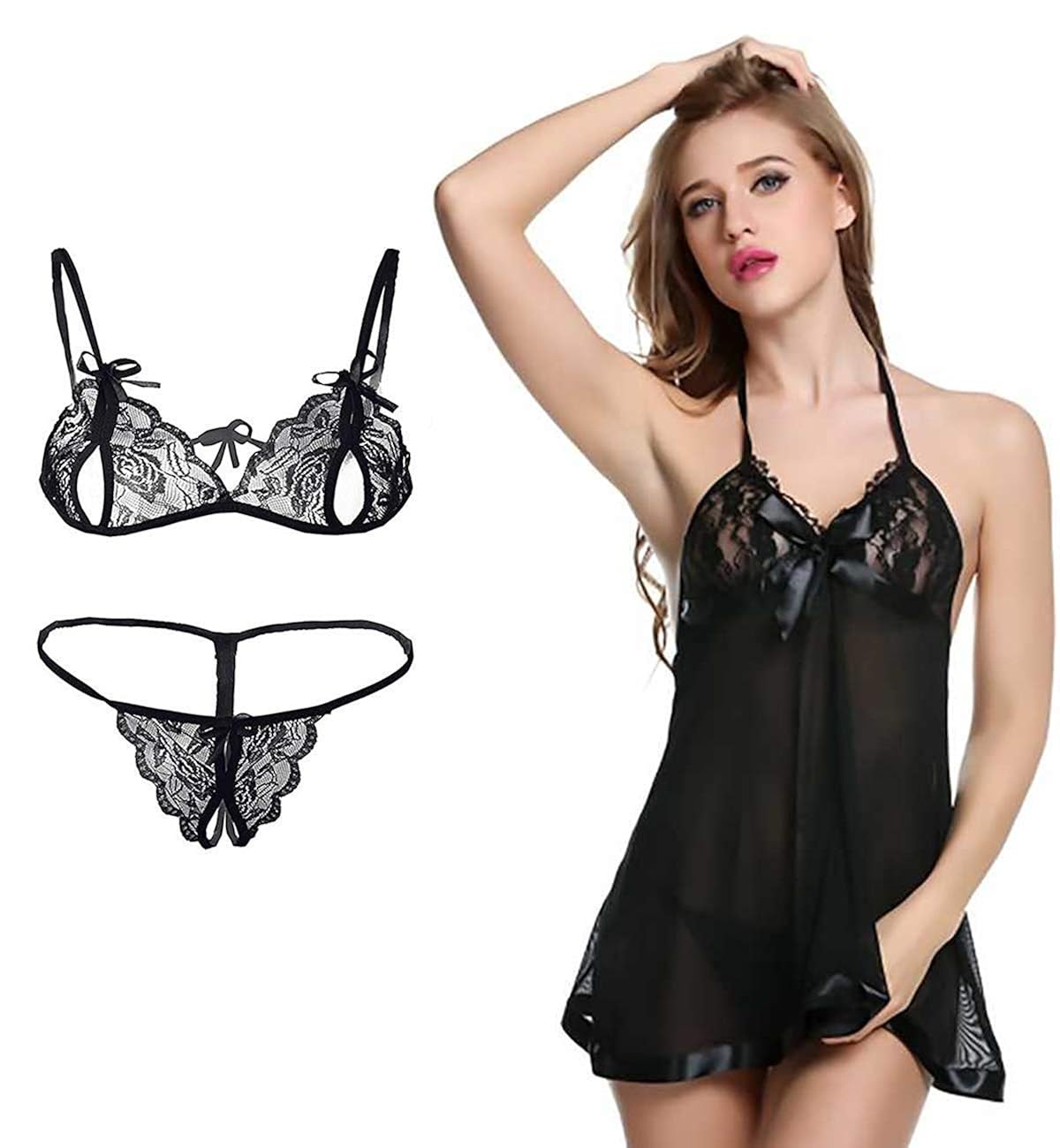 Buy Estilo Vastra Sexy Honeymoon Lingerie Babydoll Combo Dress For Women Free Size Black At Amazon In