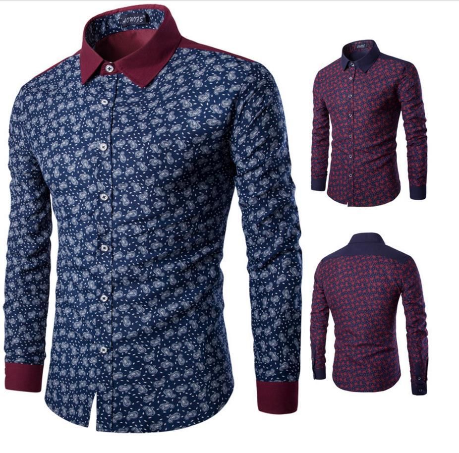 2021 Printing Shirt Slim Fit For Man Pattern Long Sleeve Turn Down